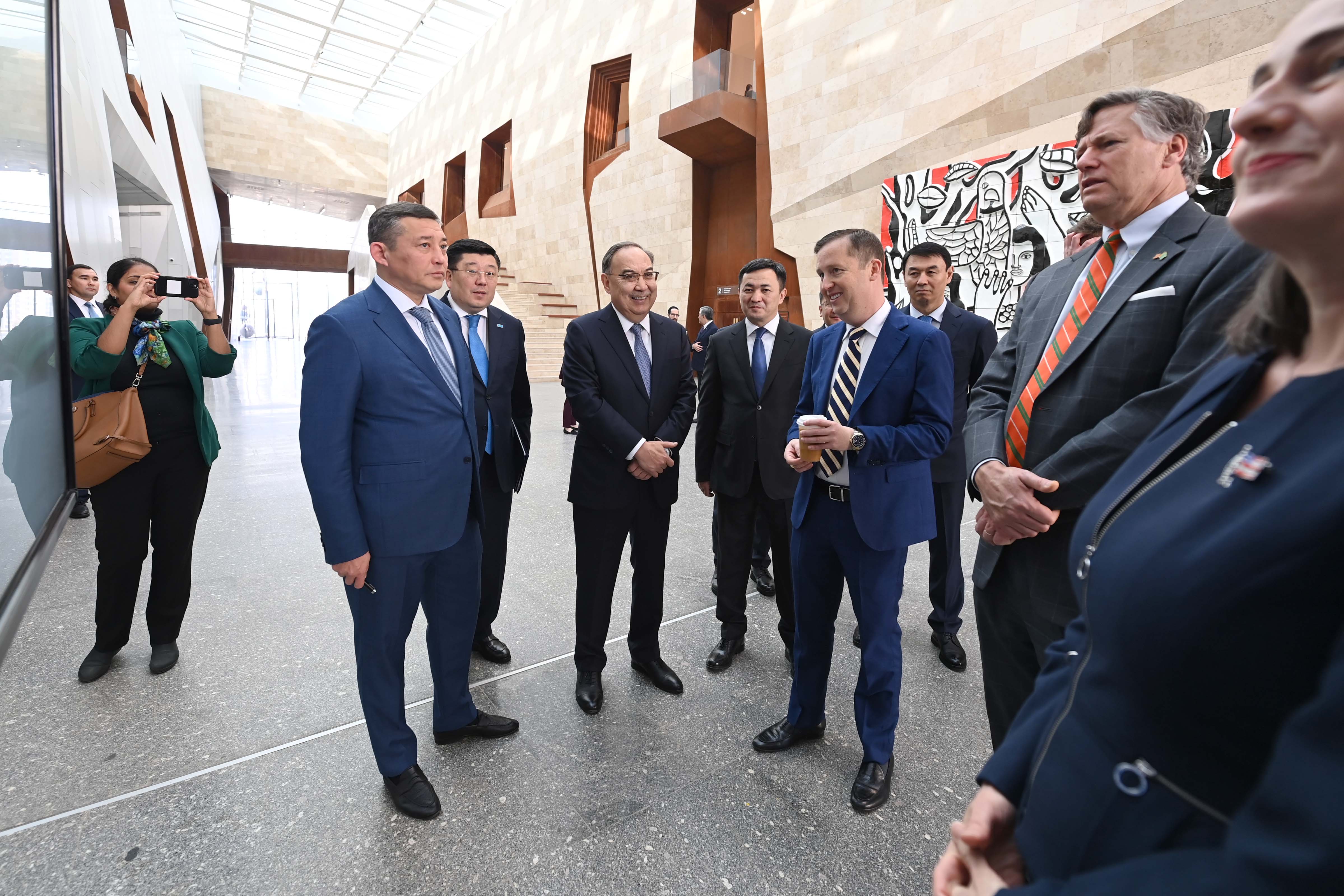 Мәртебелі меймандарды Қазақстан Республикасы Президенті Әкімшілігінің Басшысы Айбек Дәдебай қарсы алды.