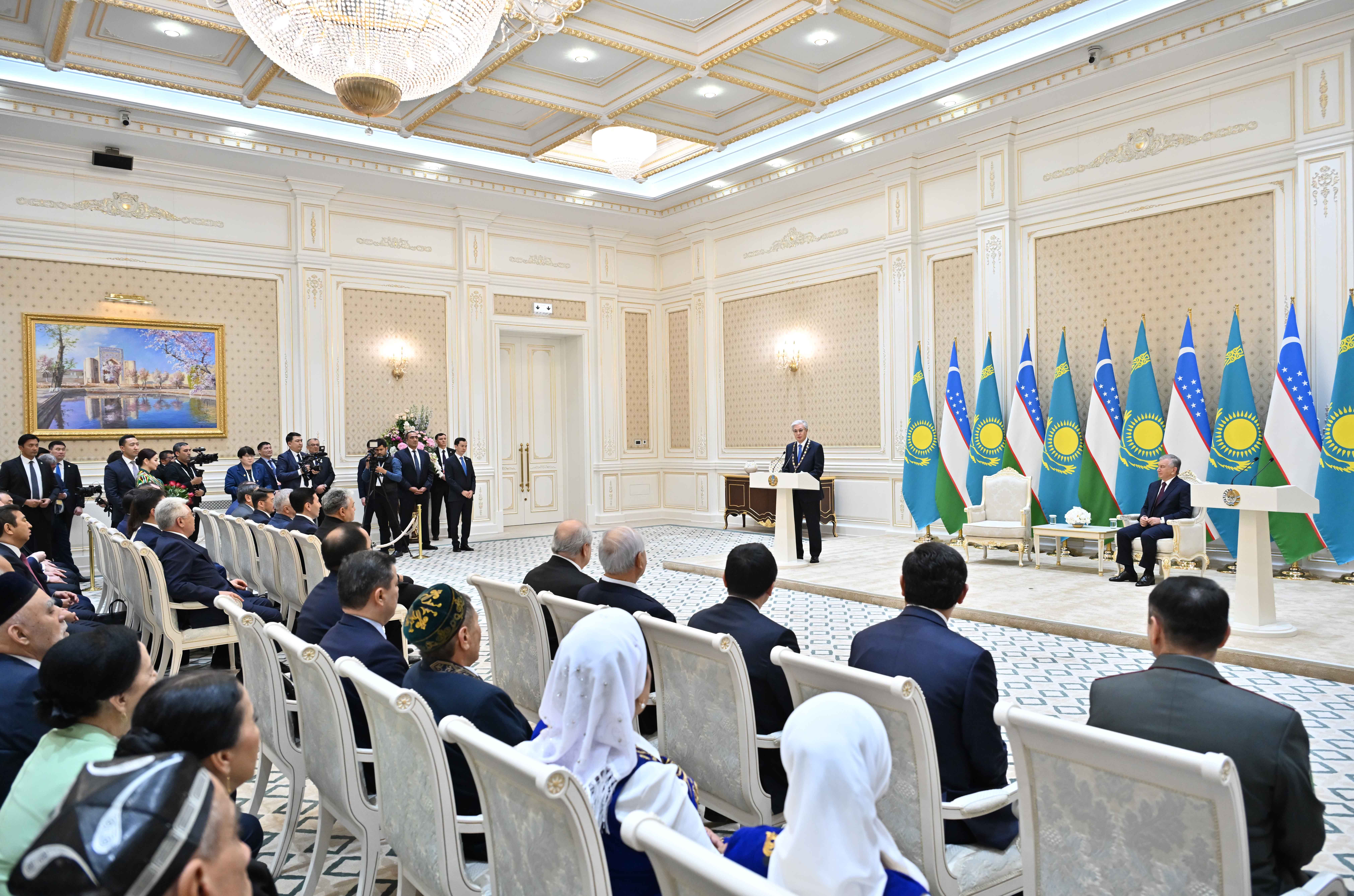 – Бұл жоғары награда достық, бейбітшілік және құрмет секілді қазақстандықтардың жанына жақын құндылықтарды әрі сонымен үндес өзбек халқының рухын айшықтайды. Орденнің атауы елдеріміз арасындағы қарым-қатынастың мазмұнын дәлме-дәл сипаттайды. Қазақстан мен Өзбекстанның достығы – баға жетпес байлығымыз. Біз оны көзіміздің қарашығындай сақтап, бауырлас халықтардың игілігі үшін өркендетеміз. Бірлескен қажыр-қайраттың арқасында қазақ-өзбек стратегиялық серіктестігі мен одақтастығын ұдайы жаңа мазмұнмен байыта береміз деп сенемін. Ұлы Абай мен Науаи достықтың озық үлгісін дәріптеп, өзара сенім халықтардың татулығын нығайтатынын, бір-біріне құрмет оны шыңдай түсетінін насихат етті. Осы өсиетке сүйеніп, біз Өзбекстанмен бауырластық одақты нығайтуға баса мән береміз, – деді Мемлекет басшысы.