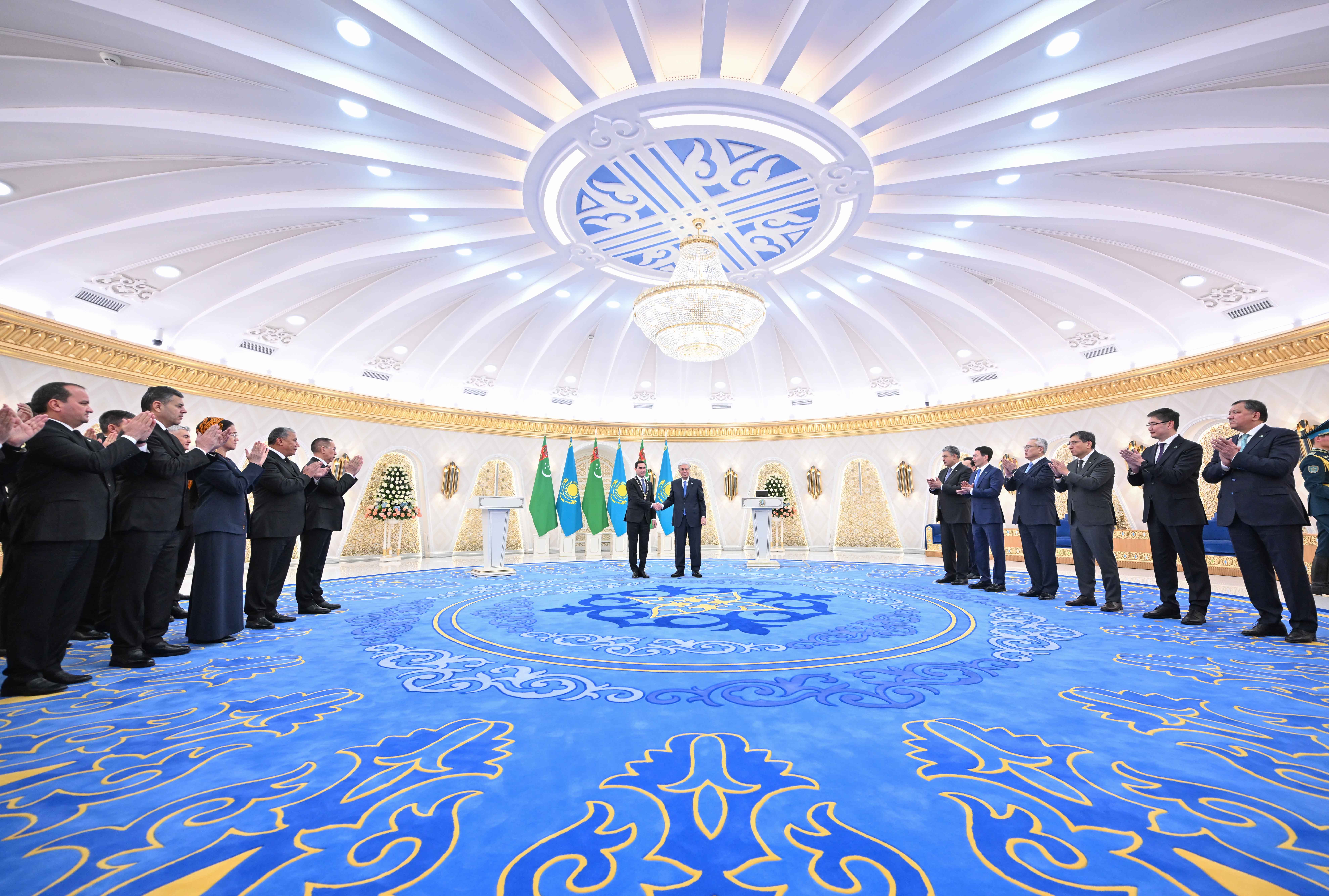 – Бұл марапатты Түрікменстан халқына көрсеткен құрметіңіз, елдеріміз арасында ғасырлардан жалғасып келе жатқан берік достық пен тату көршіліктің белгісі ретінде қабылдаймын. Екі мемлекет халықаралық аренада тығыз әрі нәтижелі ықпалдастық орнатқан. Ынтымақтастығымыз өңірлік және жаһандық күн тәртібіндегі өзекті мәселелерді шешуде өзара түсіністіктің, бірліктің және қолдаудың жоғары деңгейін көрсетіп келеді, – деді Түрікменстан Президенті.