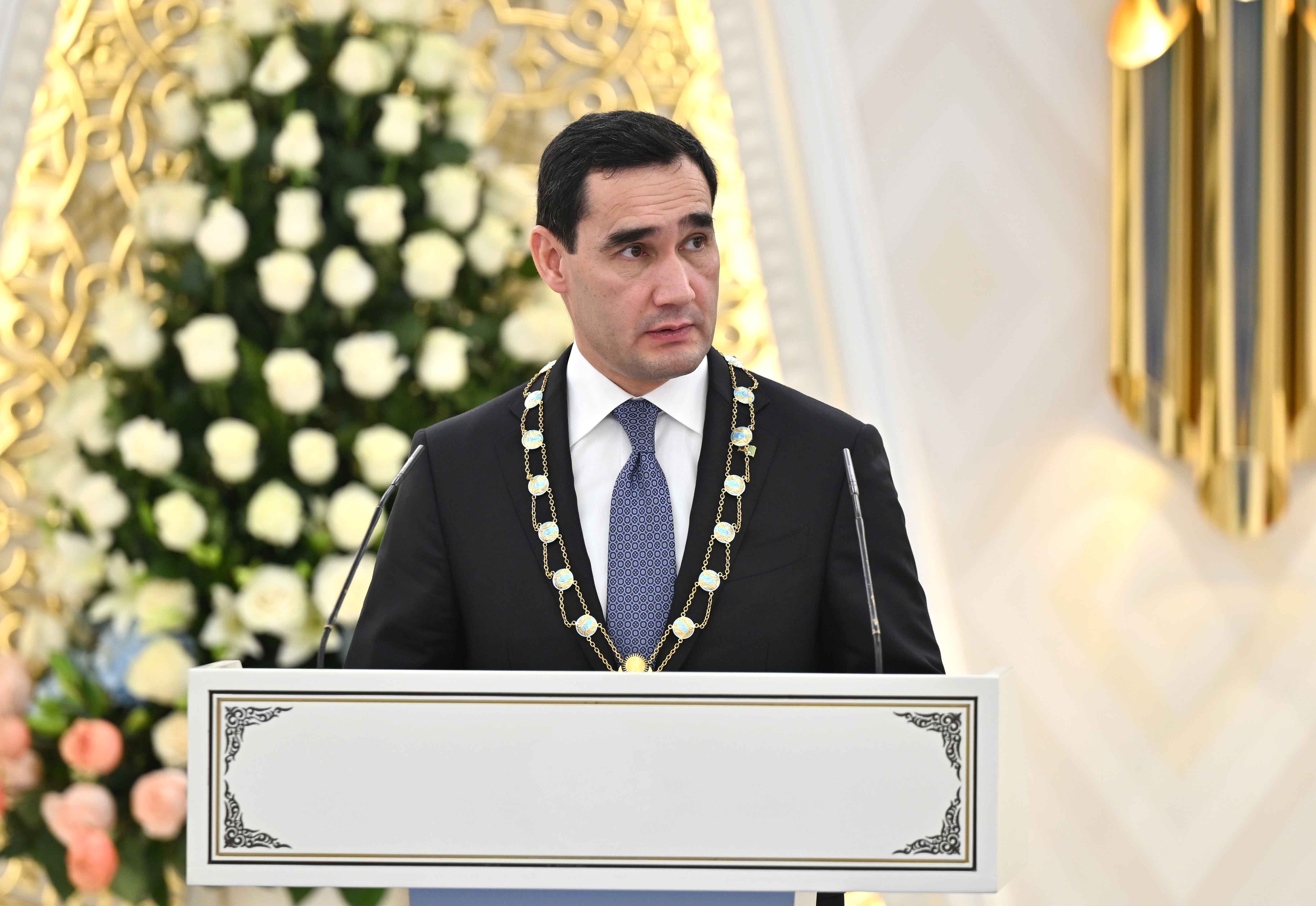 Салтанатты рәсімде Қасым-Жомарт Тоқаев Сердар Бердімұхамедовтің жаңа тұрпаттағы беделді саяси қайраткер, Түрікменстанның мемлекеттілігін, әлеуметтік-экономикалық әлеуеті мен халықаралық аренадағы орнын дәйекті түрде нығайтып келе жатқан прогрессивті, мықты көшбасшы ретіндегі рөлін атап өтті.