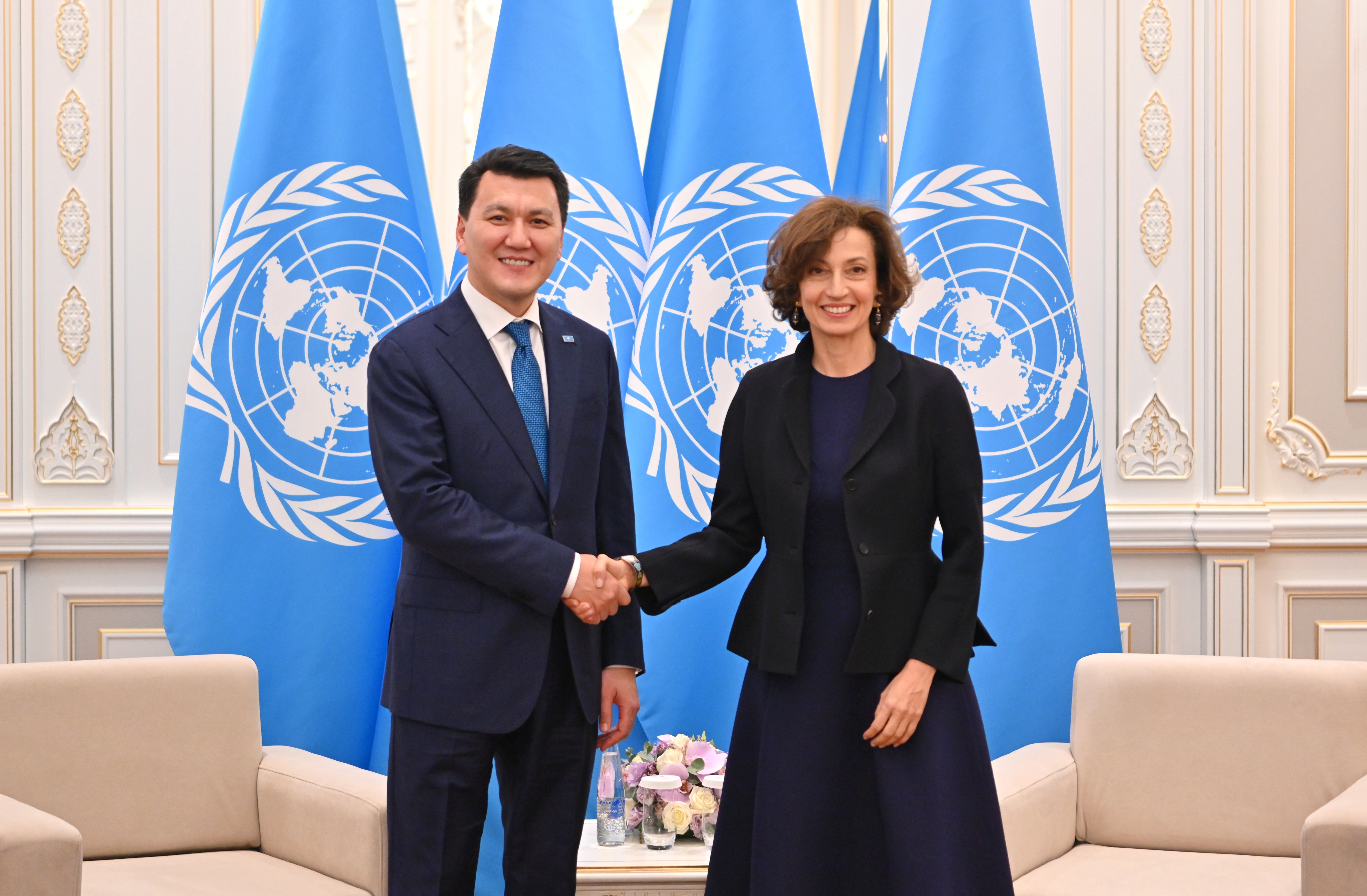 Ерлан Қарин ЮНЕСКО-ның жуырда өкілеттігі аяқталатын Бас директоры Одрэ Азулемен болған кездесуде кейінгі жылдары Қазақстанның бірқатар ұсынысы (Тұран шөлдері, Беташар, Хандар шежіресі және т.б.) ЮНЕСКО-ның беделді тізімдеріне, сондай-ақ 2024-2025 жылдары Б.Соқпақбаев пен Н.Тілендиевтің 100 жылдық мерейтойлары ЮНЕСКО-ның атаулы күндер күнтізбесіне енгізілгенін атап өтті. ЮНЕСКО-ның қолдауымен Алматы қаласындағы Орталық Азия өңірлік гляциологиялық орталығы алдағы сегіз жылдық кезеңде өз жұмысын жалғастыруға мүмкіндік алды.