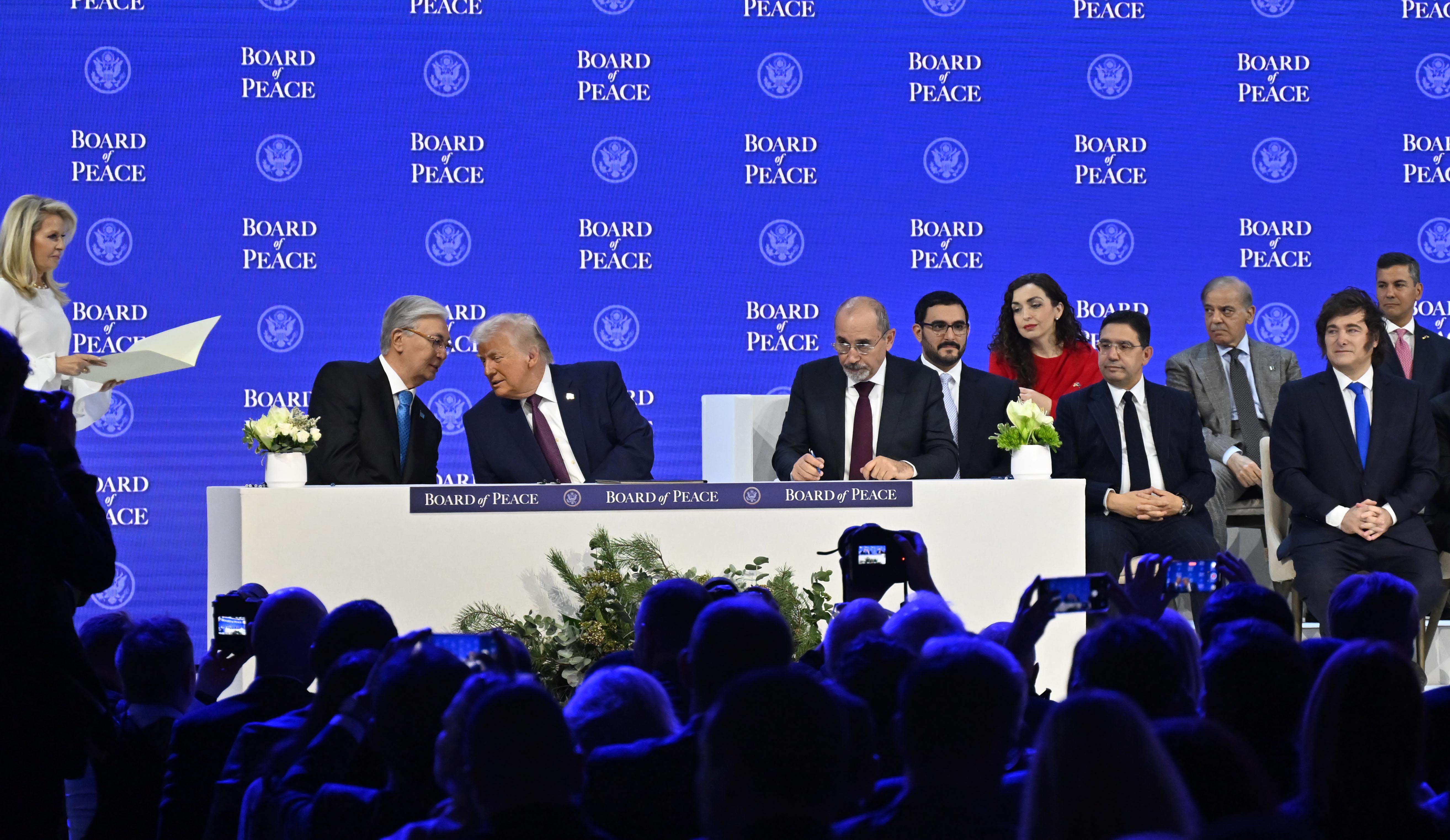 Швейцария, Давос қаласы Мемлекет басшысы Қасым-Жомарт Тоқаев АҚШ Президенті Дональд Трамптың бастамасымен құрылған Бейбітшілік кеңесінің Жарғысына қол қойды. Қол қою рәсіміне Қазақстан Президентінен басқа 18 елдің басшылары мен өкілдері қатысты.
