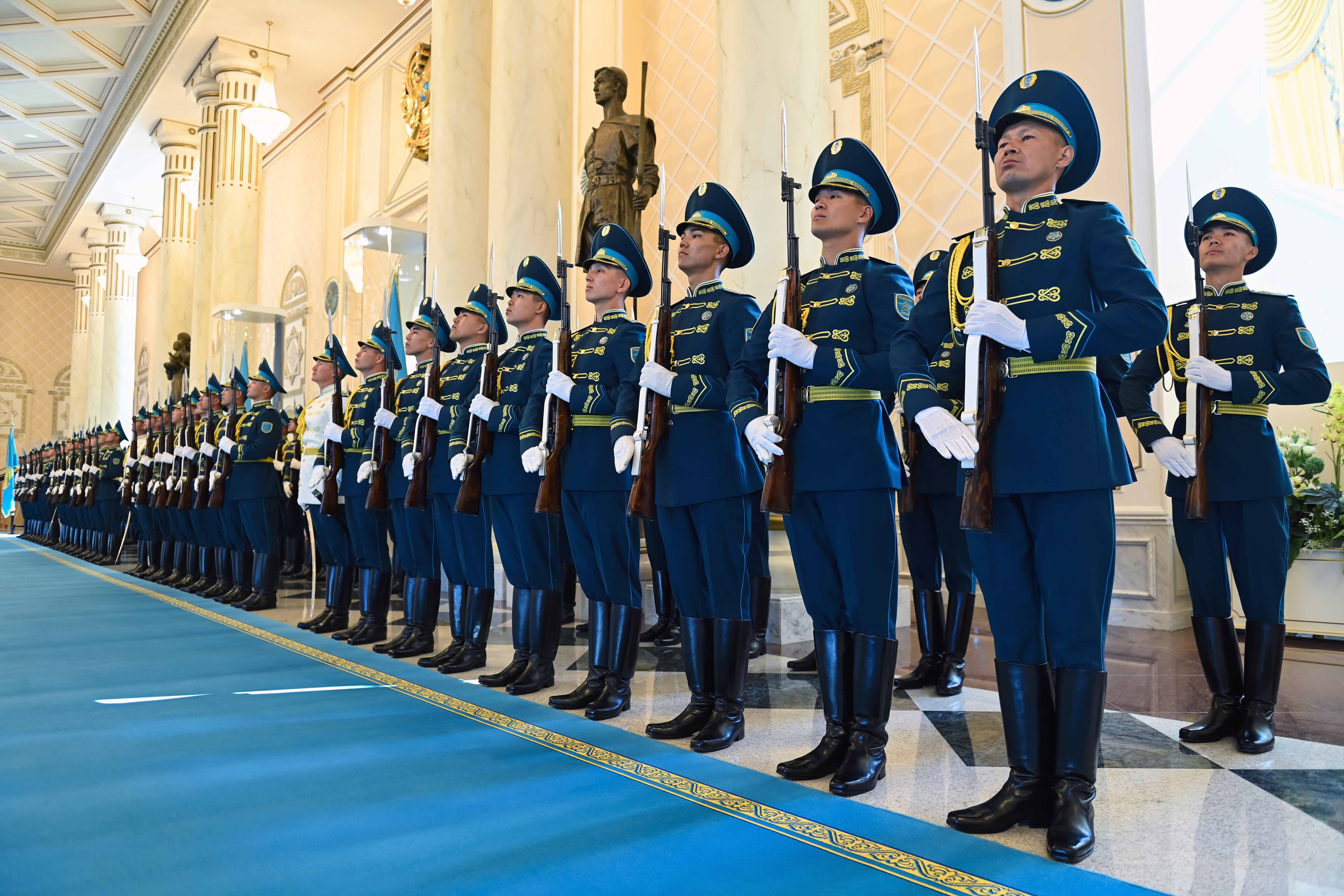 Касым-Жомарт Токаев и Абдалла II представили друг другу членов делегаций, после чего начальник роты почетного караула отдал приветственный рапорт, прозвучали гимны Казахстана и Иордании. Далее главы государств направились в зал переговоров.