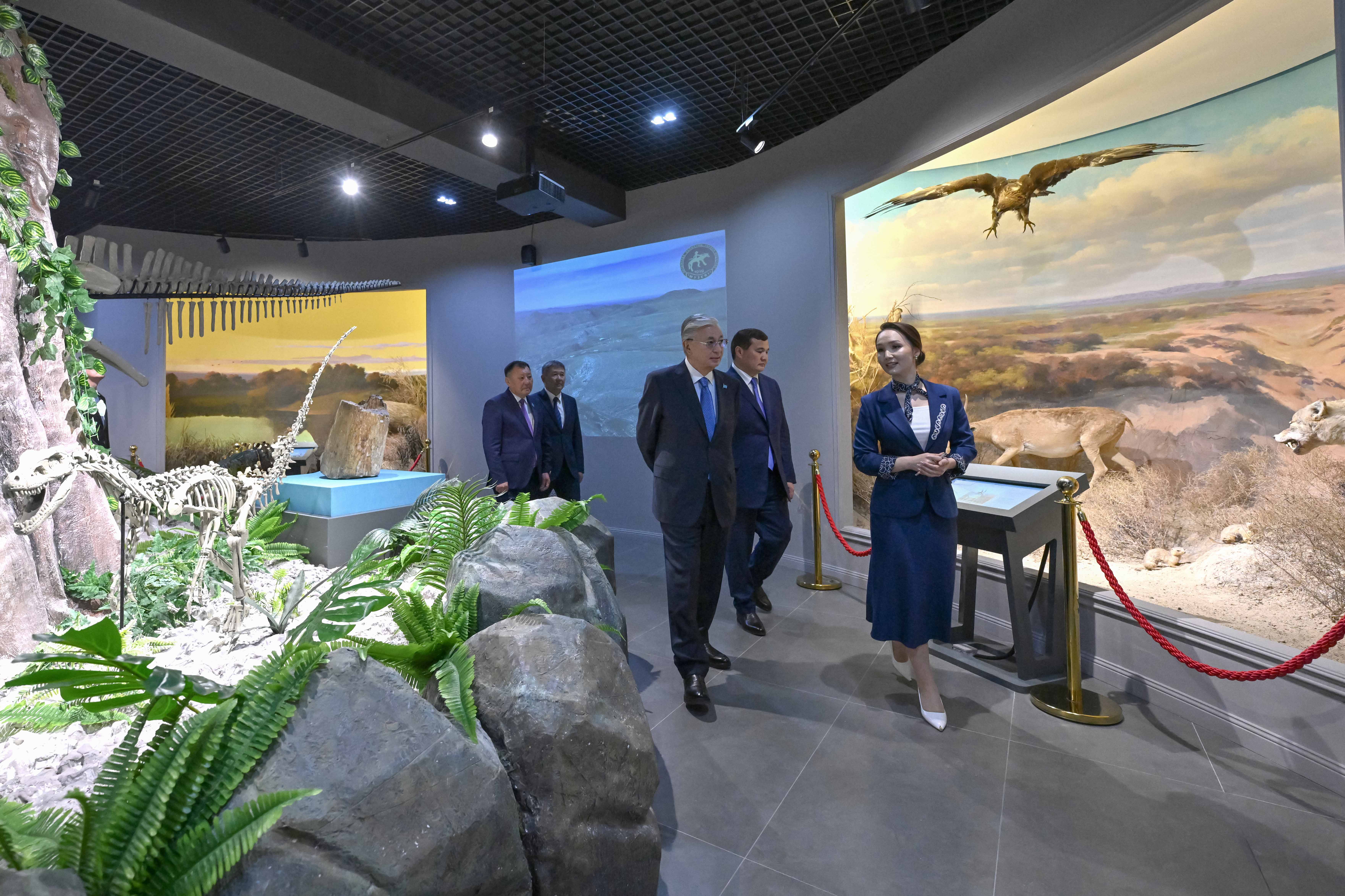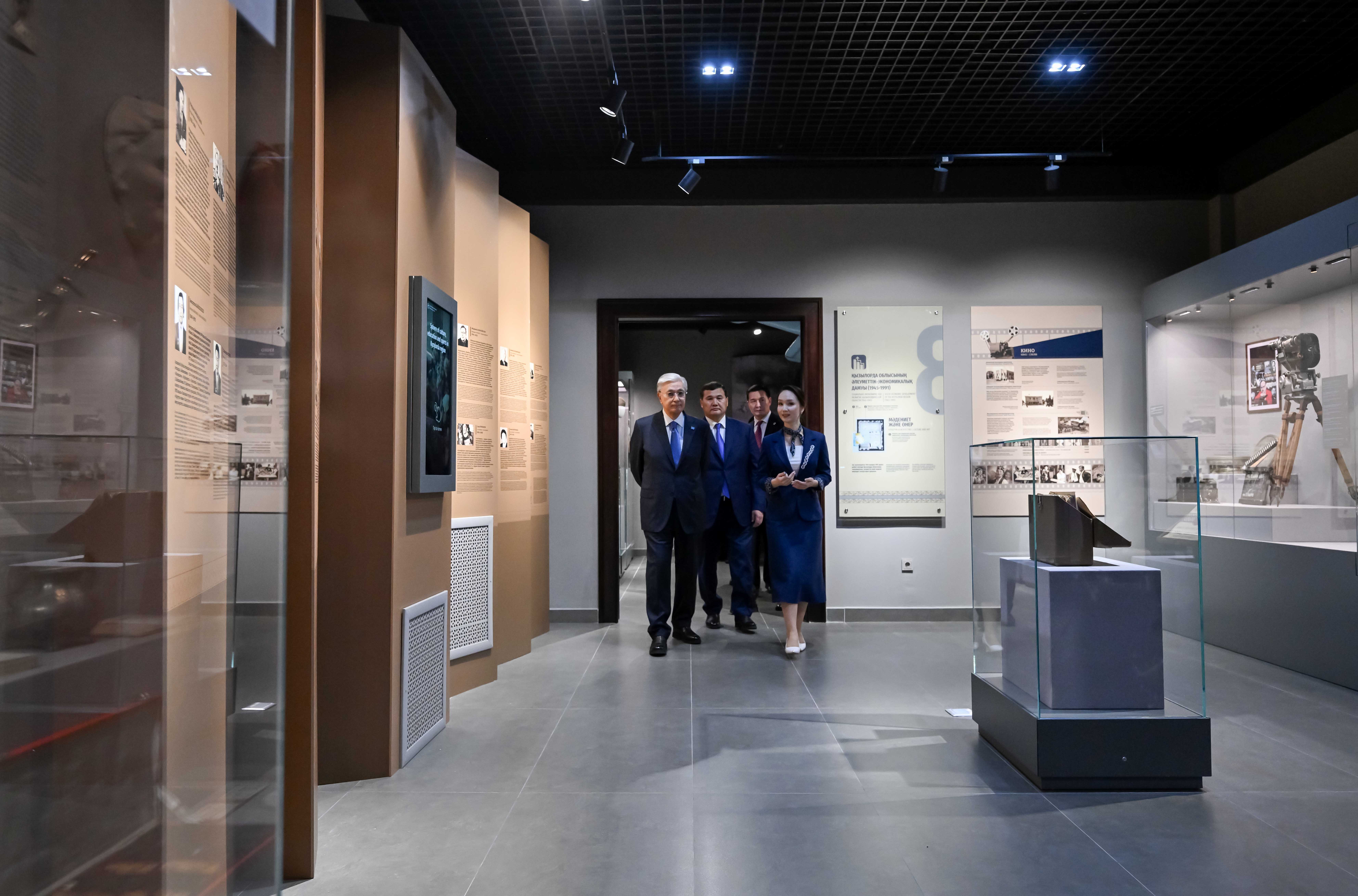 Президент ознакомился с историко-культурным наследием региона, осмотрел залы, посвященные археологии, этнографии, прошлому и современной жизни Казахстана.