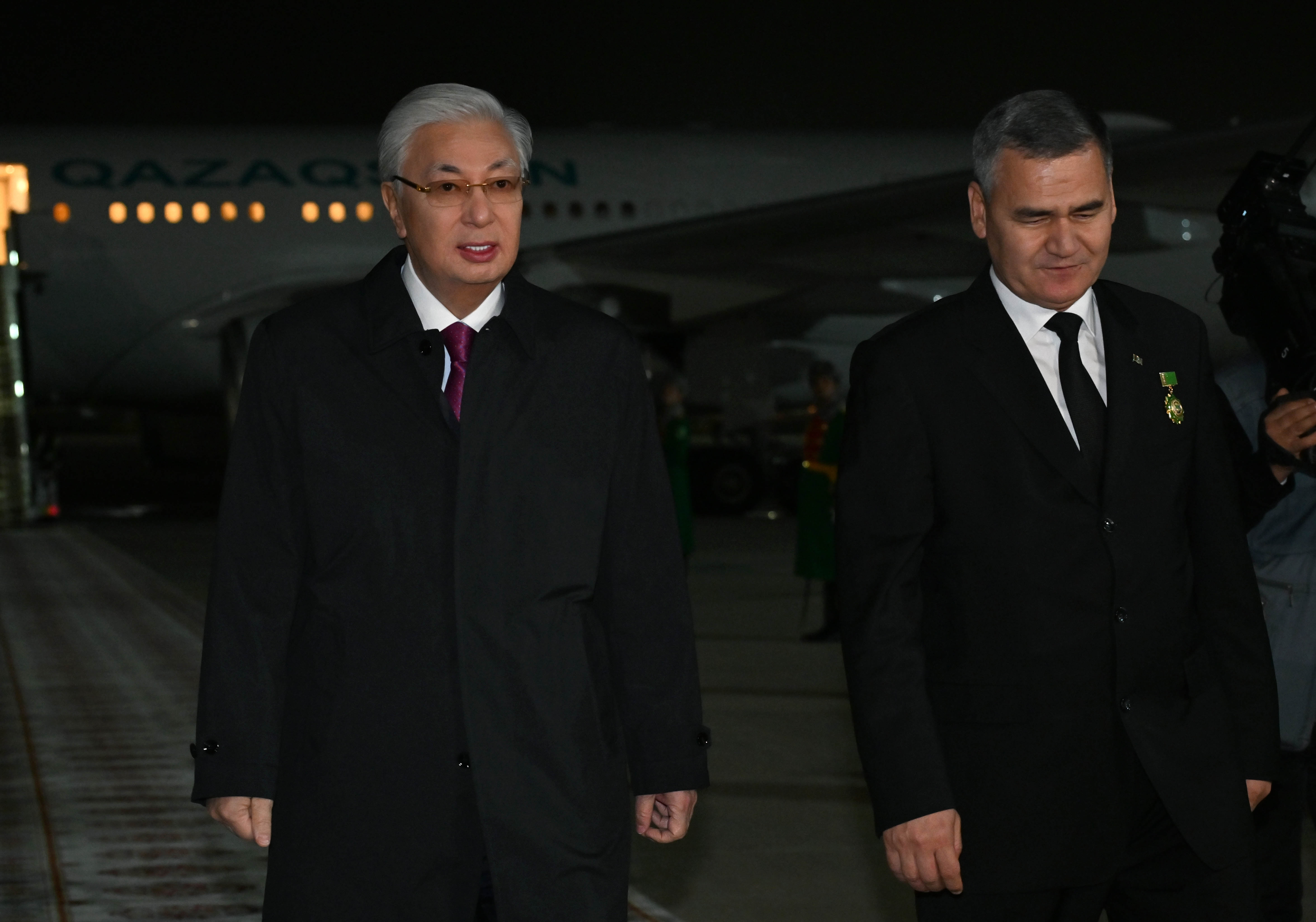 Касым-Жомарта Токаева, прибывшего в Ашхабад для участия в форуме, посвященном Международному году мира и доверия, встретил Председатель Халк Маслахаты Туркменистана Гурбангулы Бердымухамедов.