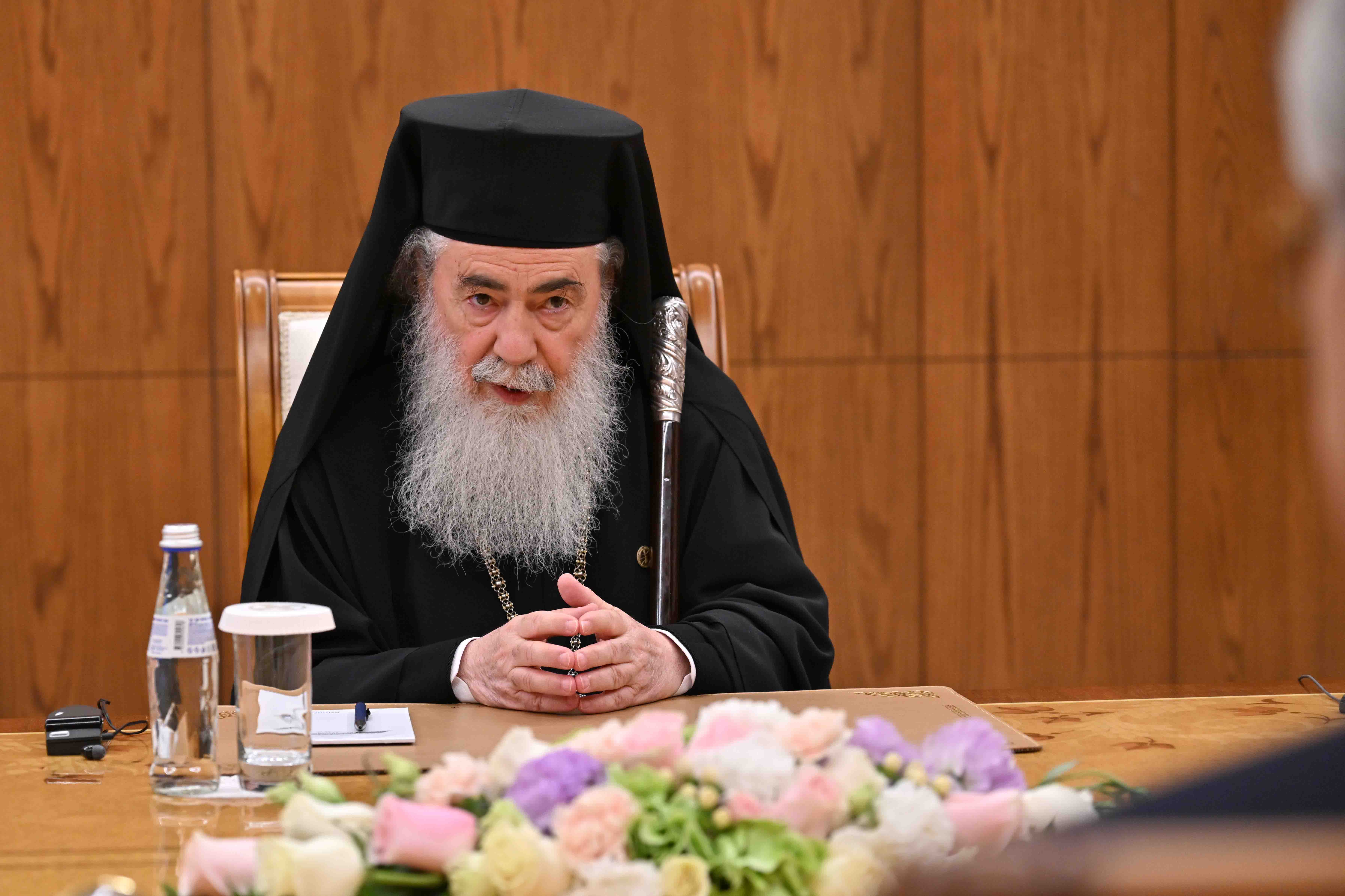 Приветствуя Патриарха Иерусалимского, Президент Касым-Жомарт Токаев выразил ему благодарность за неизменную поддержку инициативы по проведению Съезда лидеров мировых и традиционных религий. Он сказал, что яркие послания и содержательные предложения Патриарха внесли весомый вклад в укрепление роли межрелигиозного форума.