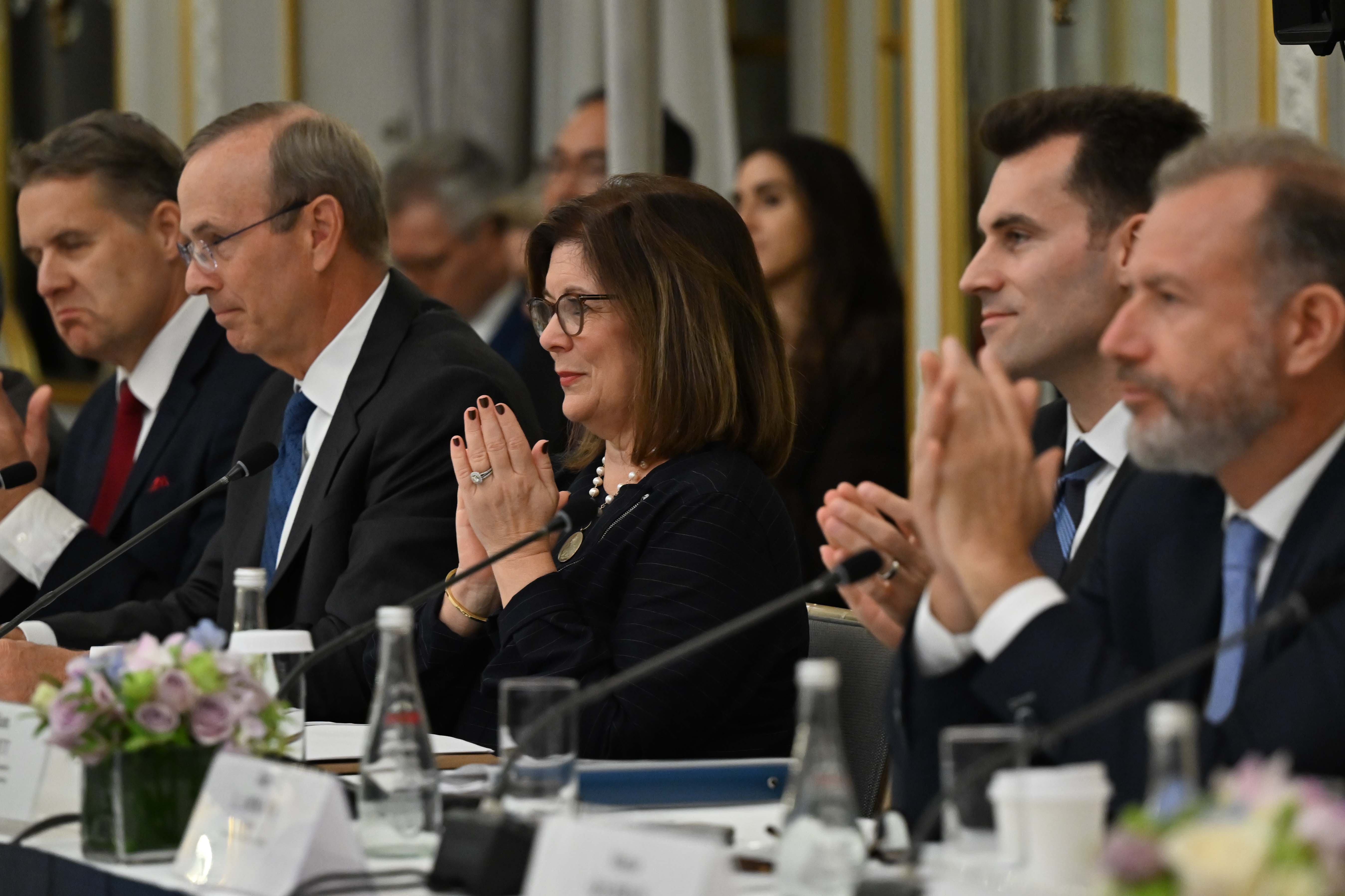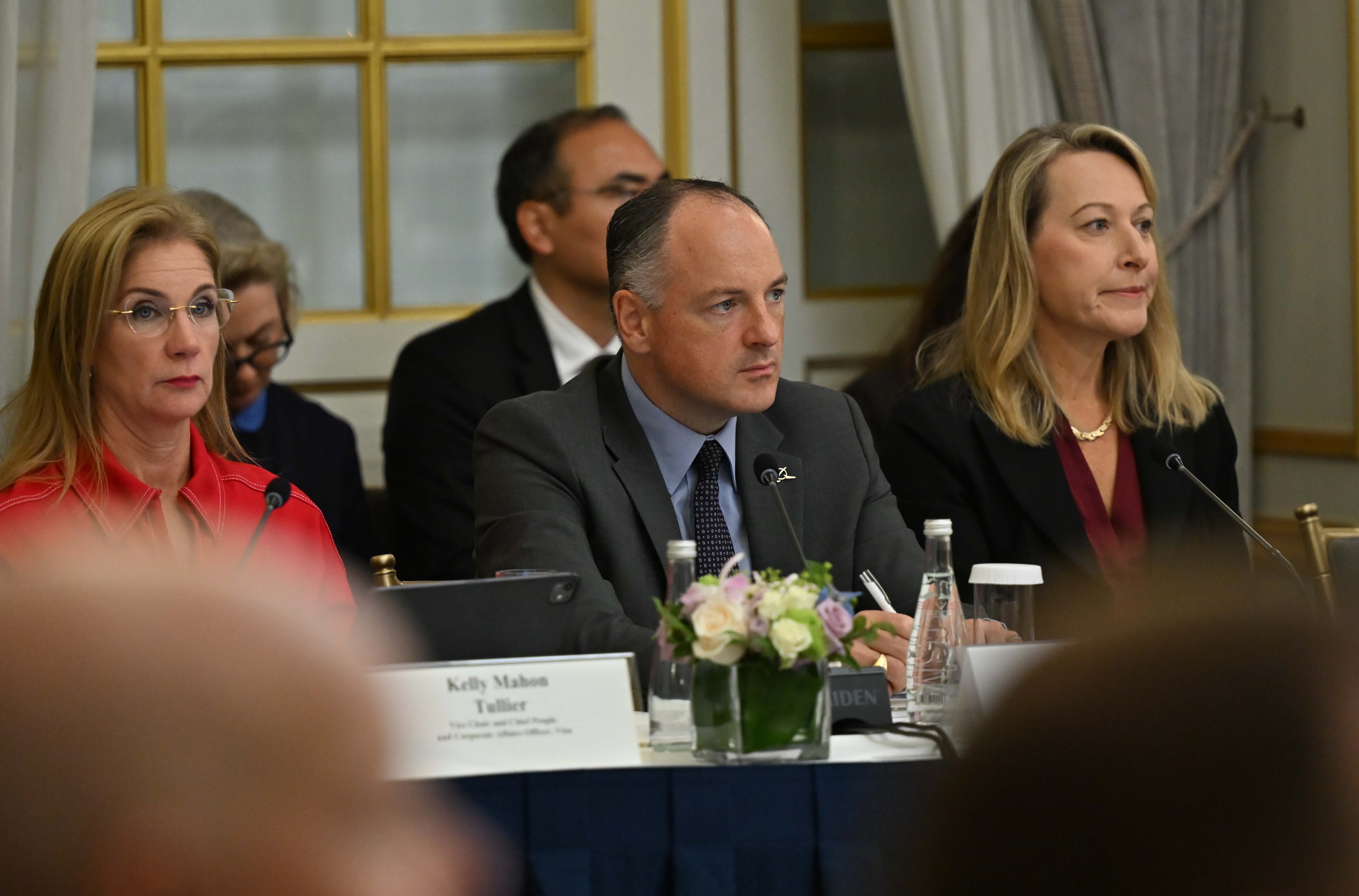 На заседании круглого стола также выступили президент Торговой палаты США Сюзанн Кларк, председатель совета директоров Chevron Майкл Уирт, заместитель министра торговли США Уильям Киммит, исполняющий обязанности заместителя Государственного секретаря США по вопросам экономического роста, энергетики и окружающей среды Томас Лерстен, вице-президент компании NVIDIA по глобальным инициативам в сфере искусственного интеллекта Калиста Рэдмонд, глобальный председатель совета директоров Boston Consulting Group Ричард Лессер, управляющий директор, глава глобального направления по суверенным рейтингам и рейтингам многосторонних финансовых институтов S&P Global Роберто Сифон-Аревало, президент ExxonMobil Upstream Company Дэн Амман, главный исполнительный директор LanzaJet Джимми Самарцис, вице-президент компании The Boeing Лэндон Лумис, главный исполнительный директор Ashmore Group Марк Кумбс, заместитель председателя и главный директор по персоналу и корпоративным вопросам Visa Келли Тулье, основатель и исполнительный сопредседатель совета директоров Ivanhoe Mines Ltd. Роберт Фридланд, президент Колорадской школы горного дела Пол Джонсон, руководитель направления по образованию и государственным программам GTM, OpenAI Кевин Миллс, главный административный директор Mastercard Ричард Верма, президент Shell USA Колетт Хёрстиус, президент и главный исполнительный директор Honeywell Process Automation Джеймс Массо, руководитель глобального потребительского направления Amazon Kuiper Лиза Скалпоне.