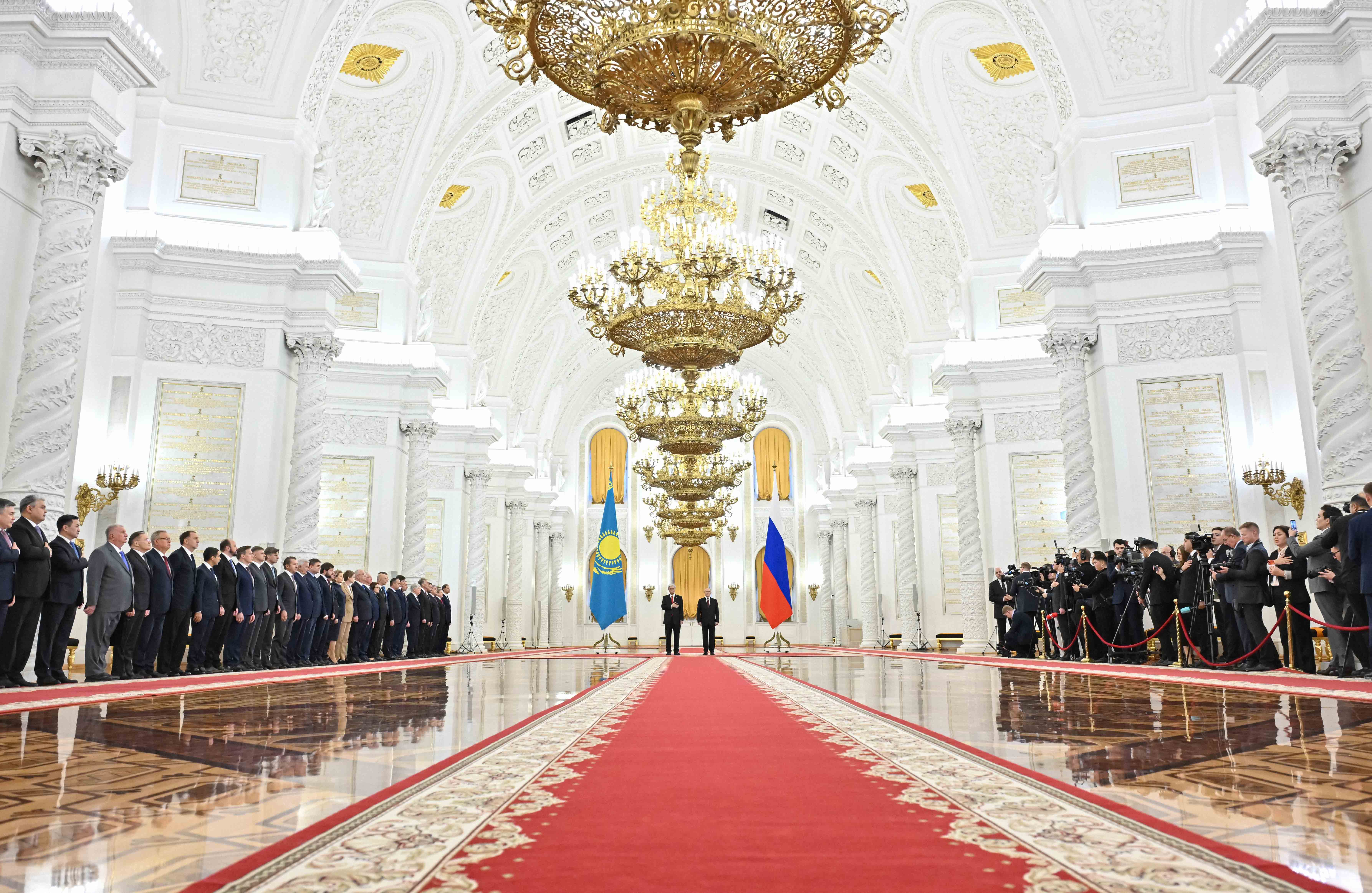 Глава Казахстана выразил признательность Владимиру Путину за приглашение посетить Москву, а также теплый прием и традиционное гостеприимство.
