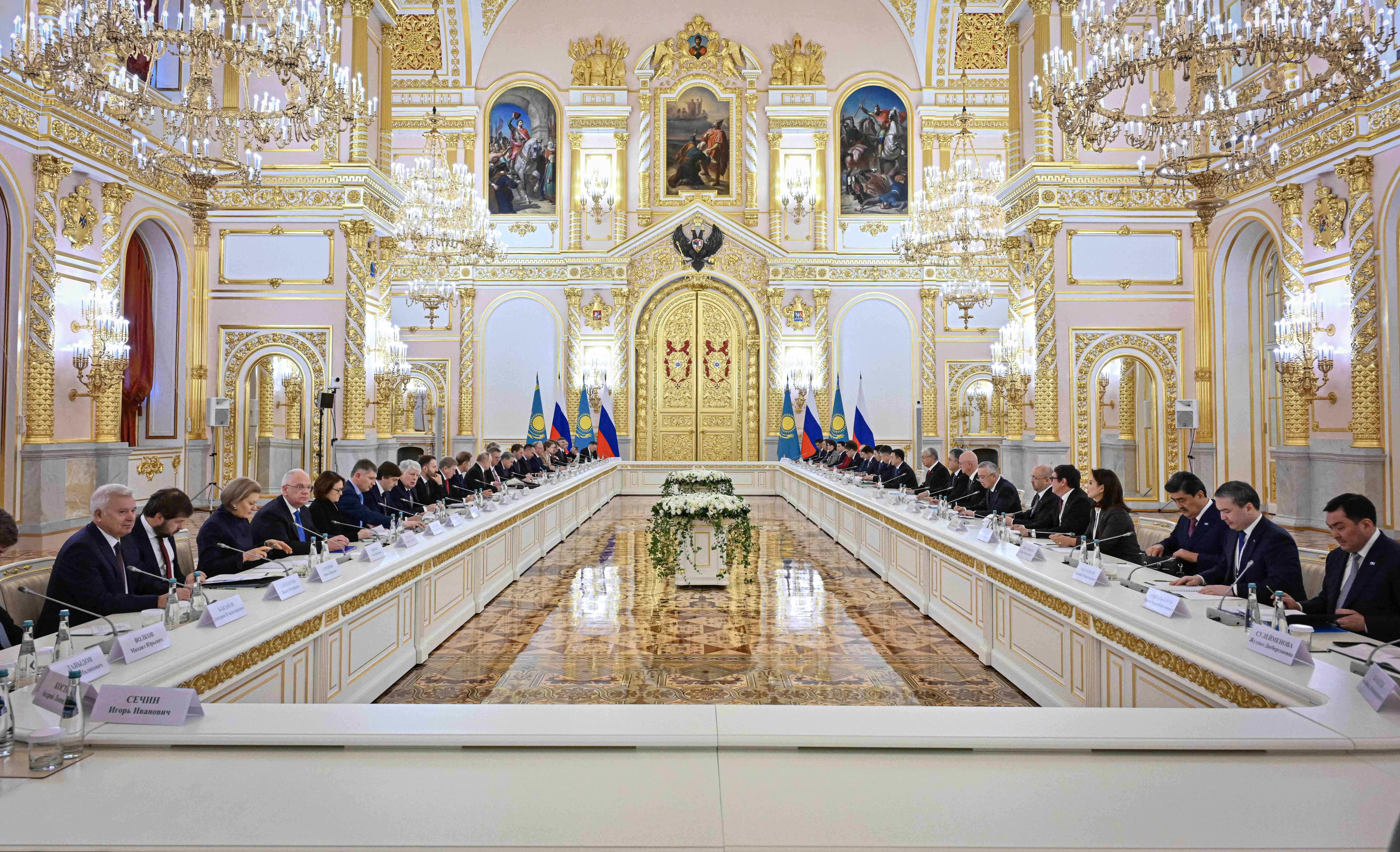Затем Касым-Жомарт Токаев и Владимир Путин провели переговоры в расширенном составе с участием делегаций двух стран.
