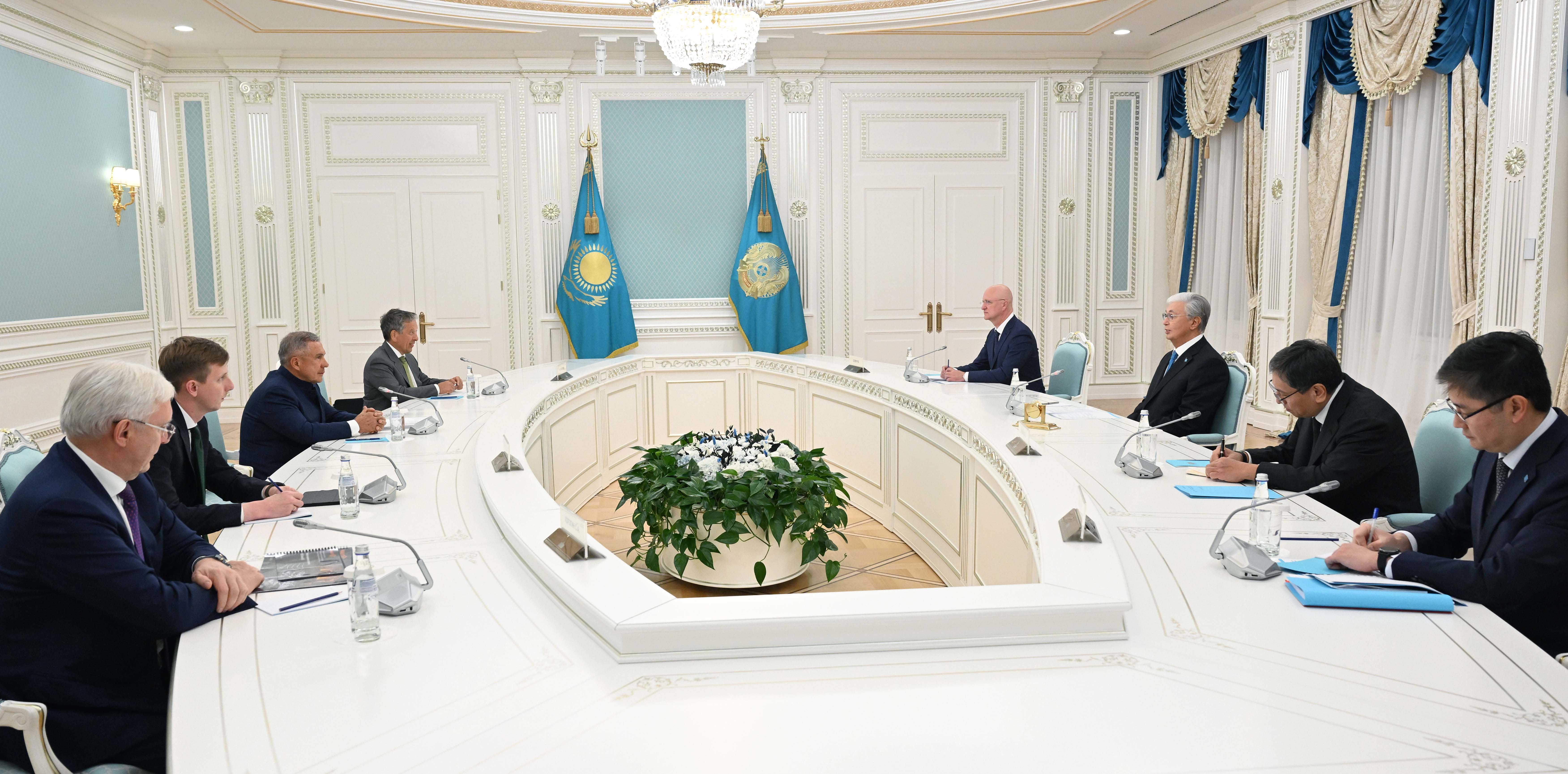 В начале беседы Касым-Жомарт Токаев поздравил Рустама Минниханова с переизбранием на пост Раиса Республики Татарстан и поблагодарил его за активное участие в упрочении казахско-российских отношений, взаимовыгодного партнерства между регионами Казахстана и Татарстаном.