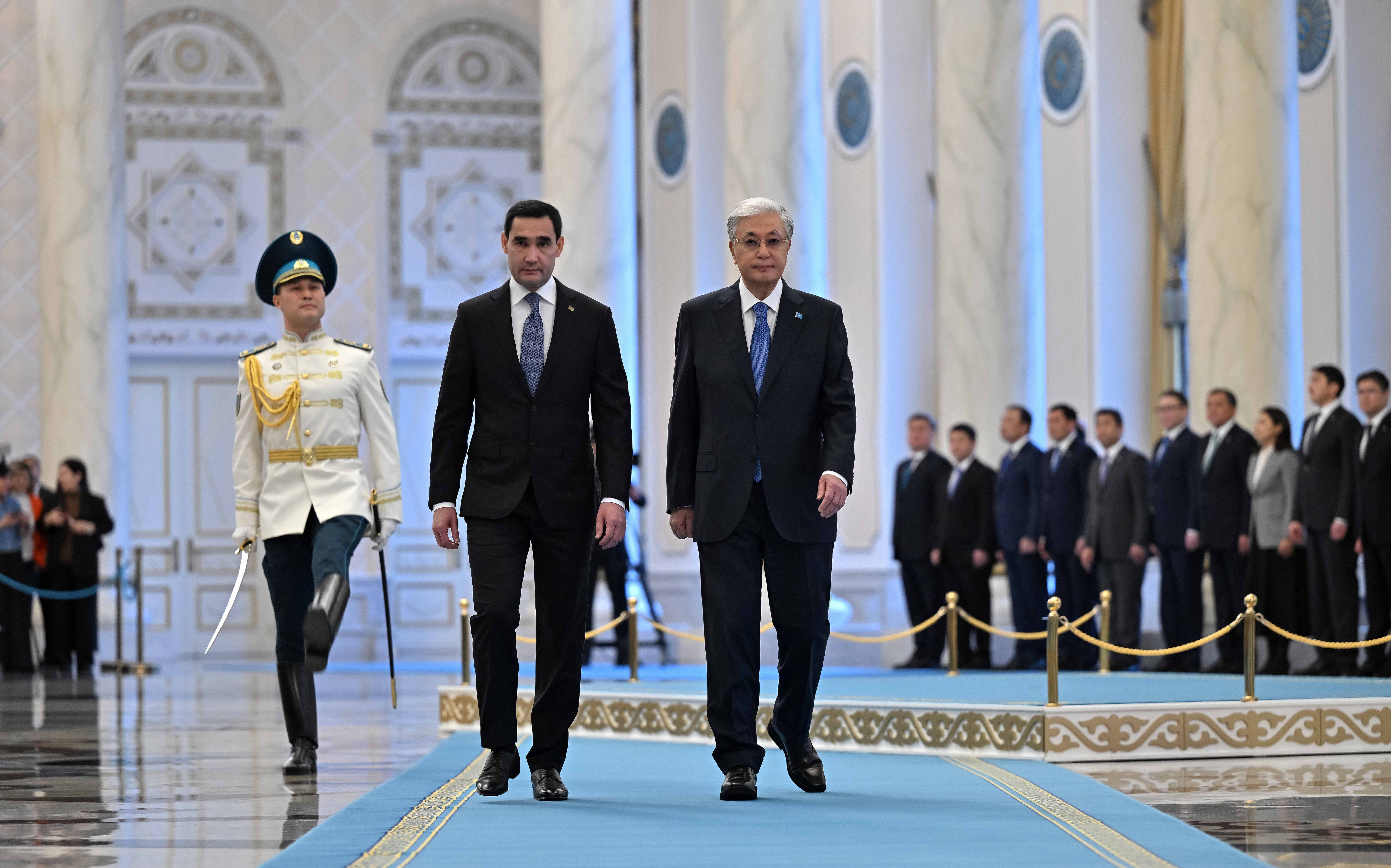 Касым-Жомарт Токаев приветствовал Сердара Бердымухамедова, прибывшего в Казахстан с государственным визитом.