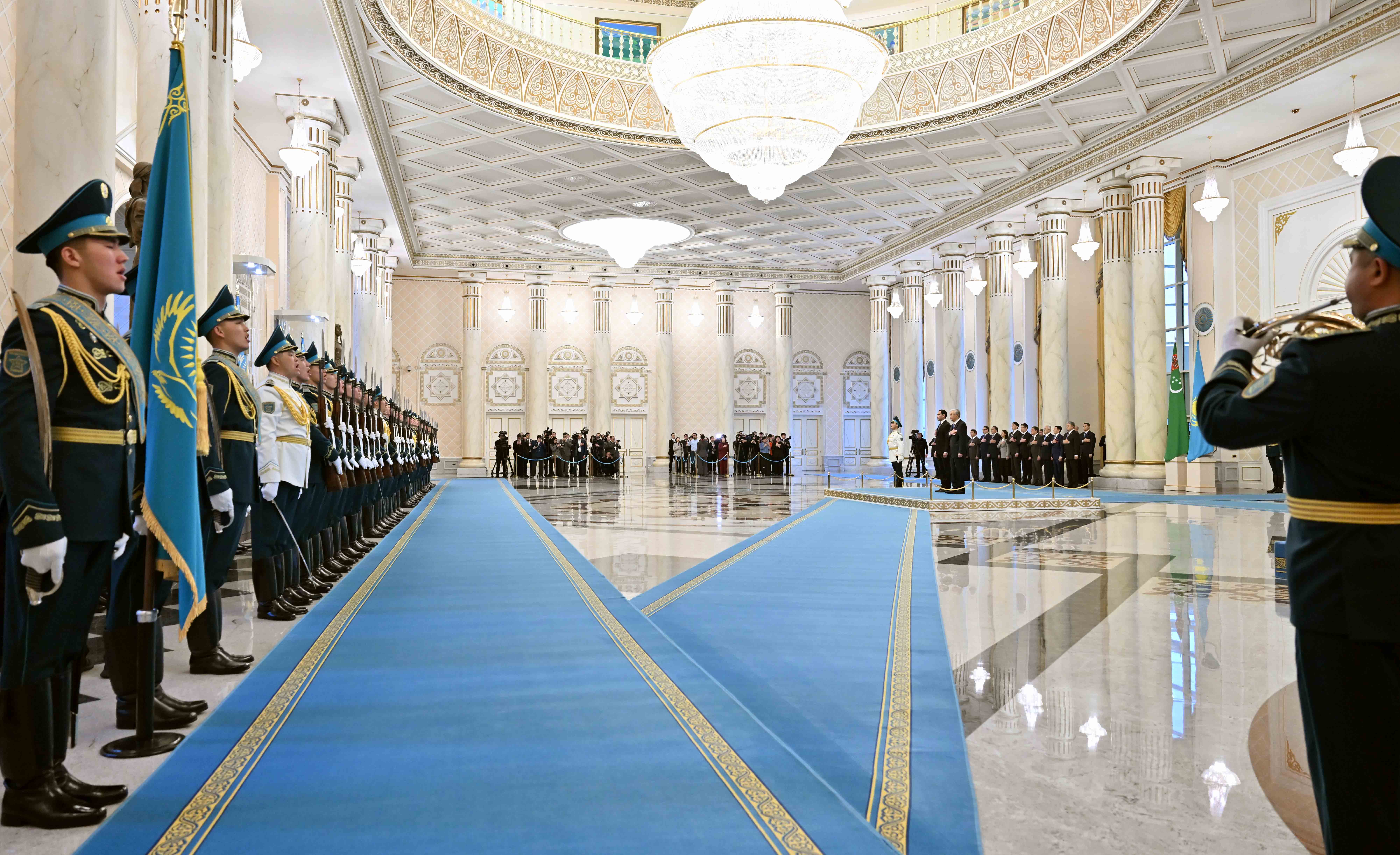 – Казахи и туркмены издавна являются родственными народами, связанными крепкими узами дружбы. Нас объединяют общая история, созвучные стремления и близкие культурно-духовные ценности. Мы придаем особое значение всестороннему развитию сотрудничества с Туркменистаном в духе добрососедства и взаимной поддержки. Совместными усилиями мы готовы уверенно двигаться к светлому будущему. Убежден, что стратегическое партнерство будет и дальше укрепляться во благо наших братских народов, – заявил Глава государства.